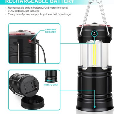2 Pack Camping Lanterns Camping Accessories USB Rechargeable and Battery Powered 2-in-1 LED Lanterns, Hurricane Lights with Flashlight and Magnet Base for Camping, Hiking, Emergency, Outage