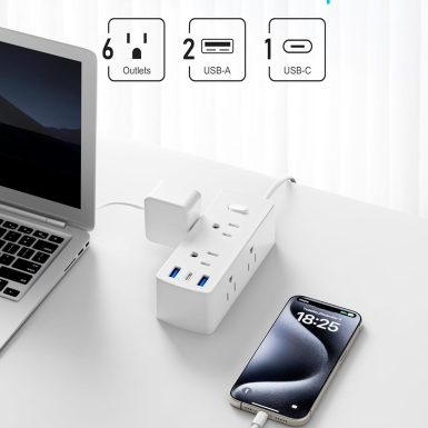 European Travel Plug Adapter, Olcorife Universal Travel Adapter for EU UK US AUS, 6 Outlets 3 USB Ports with 5ft Extension Cord, International Power Adapter for US to Europe UK AUS